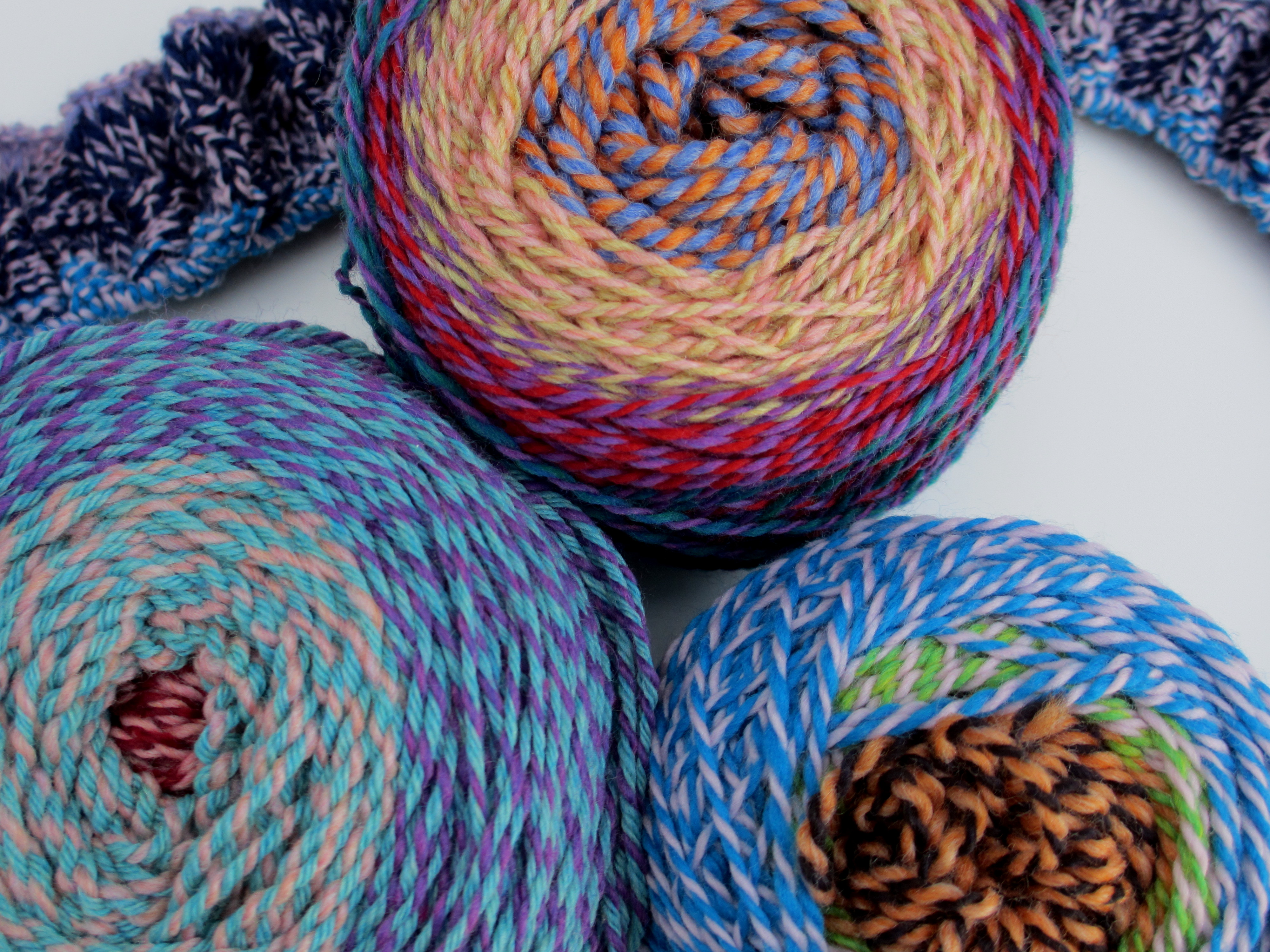 The stitches were cut up the back on the I-cord swatch to lay flat.