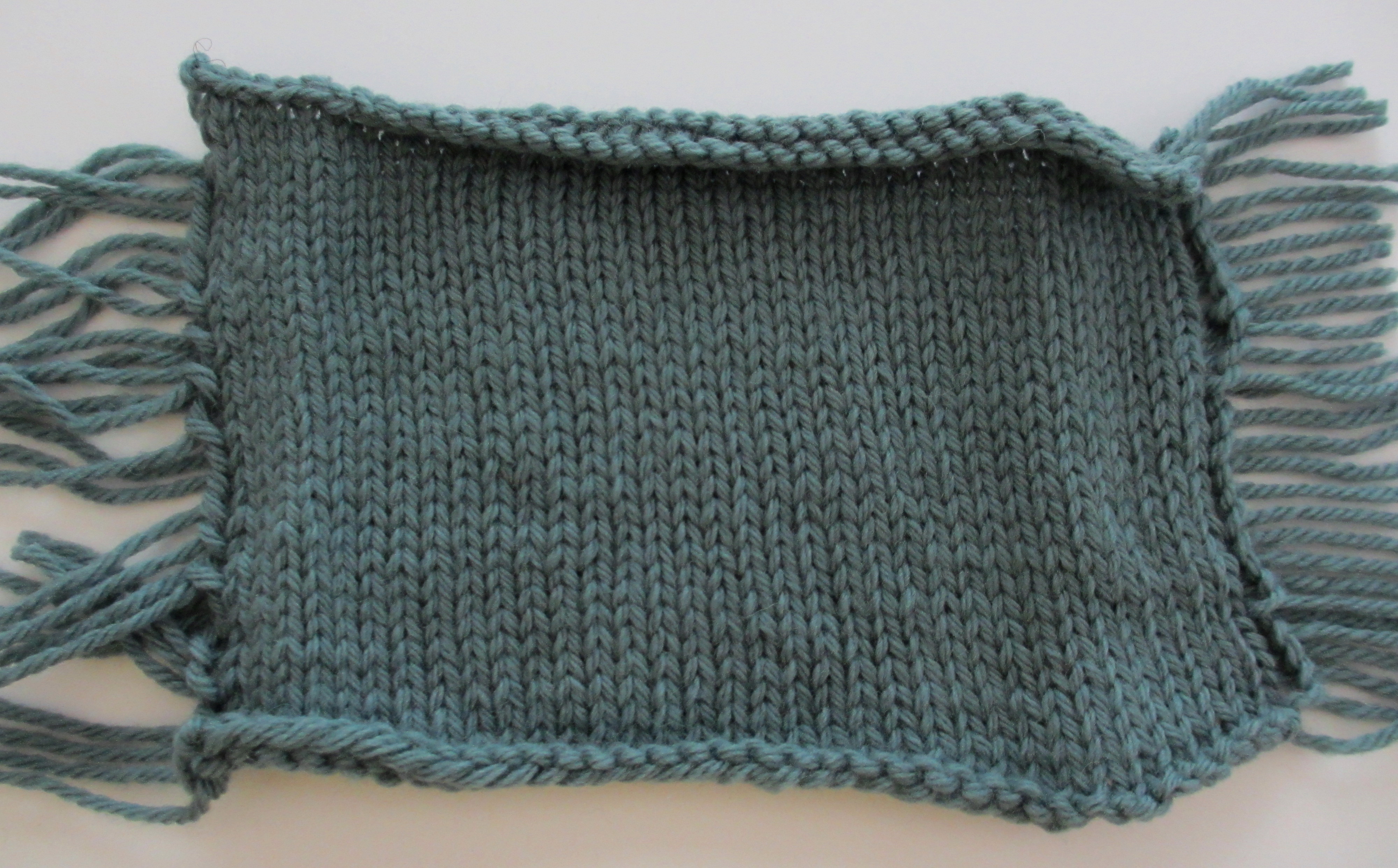 Compared to the other two swatches, the tension on the knit back and forth swatch was looser. Before measuring, each swatch was washed.