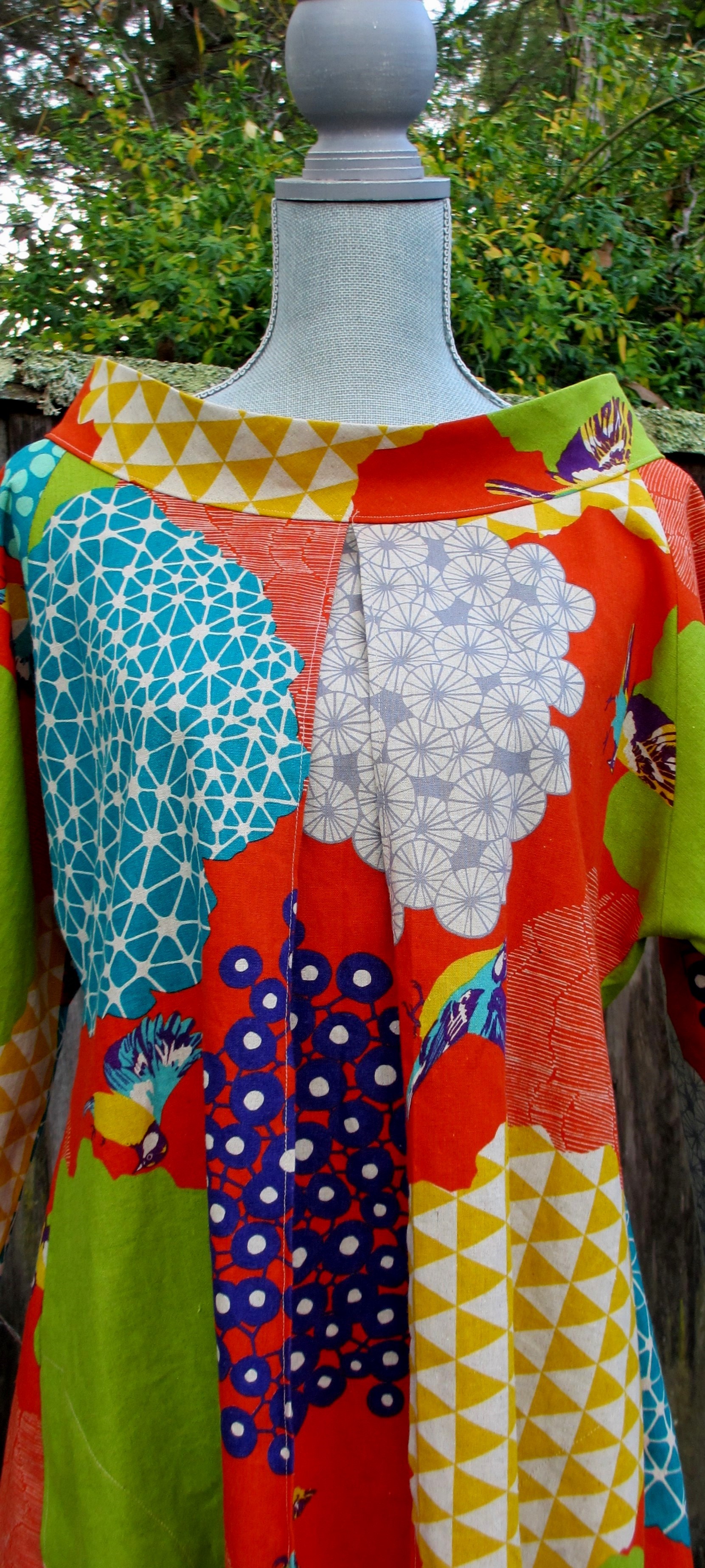 On a recent trip to Eddie’s Quilting Bee http://www.eddiesquiltingbee.com/ in Mt. View, CA, I was drawn to the bold graphic design and color of a bolt of fabric from the collection of Etsuko Furuya. After selecting a pattern and purchasing the fabric I cruised on down the freeway excited to dust off the cover of my sewing machine and began to sew.