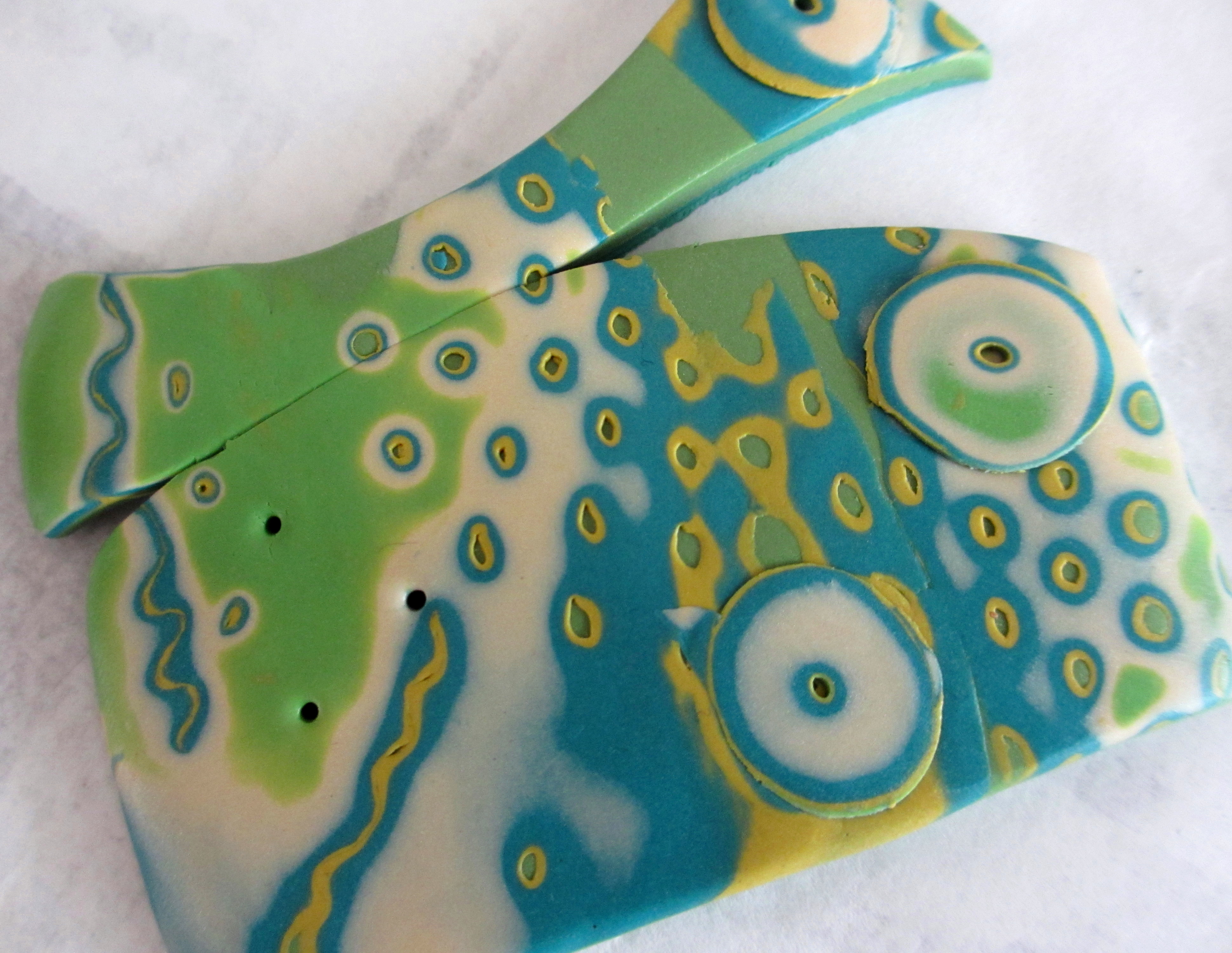 The elements on the right and left are from the decorated sheet detailed in my last post, Pulled Pork and Polymer Clay, dated July 31, 2015.